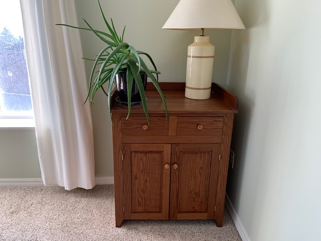 This piece of furniture was made by Nate’s dad. It serves as a dry sink/changing table for Alex. It has been my crafting nook. Now, it will hold Nate’s office supplies and work stuff. Photo by Cecilia Kennedy