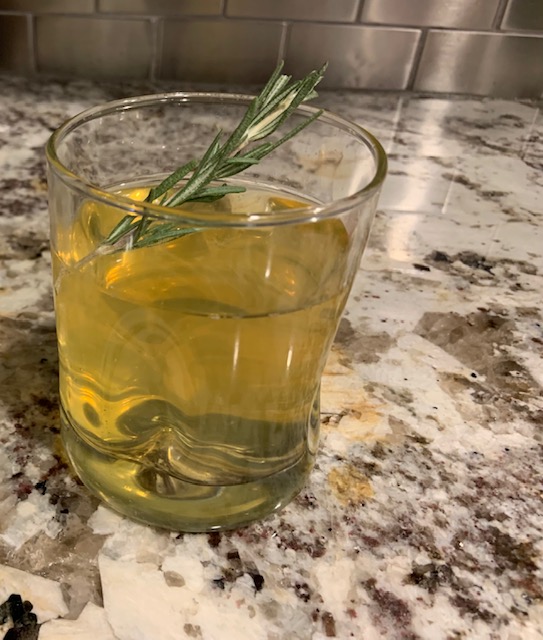 The recipe is quite simple. Just pour two ounces of gin into a glass. Add ½ tablespoon of lemon juice, and then pour some sparkling apple juice over the top, filling up the glass. Next, just a drizzle of agave syrup tops off the drink. The flashy folks over at Town & Country suggest you serve it with apple slices and a sprig of thyme. I didn’t have any apple slices, but I floated a sprig of thyme on the edge. It’s a kind of life raft/floatation device, in case the landing gets a little bumpy.